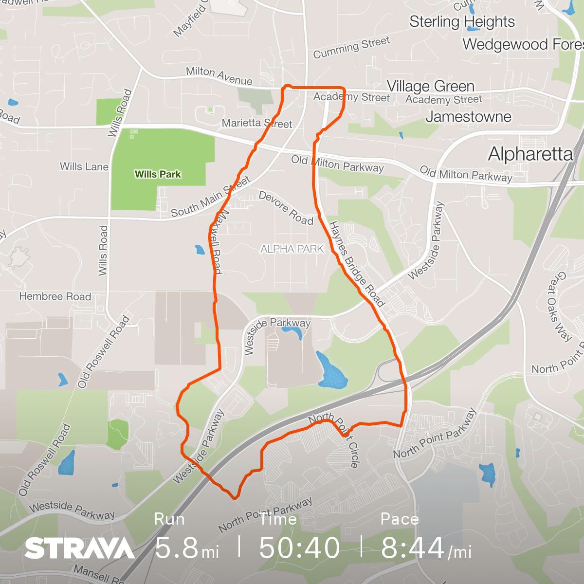 We crossed Main Street to a right on Haynes Bridge which was eerily quiet on this schools out last work day before Christmas. We ran down across GA400 and right into North Point Mall. We beat the holiday rush. Lots of great parking spaces available. ran around the back of the mall and exited onto Encore Parkway and turned right across the new bridge over GA400 and the long steep climb up to the top of VZ hill. We crested the top at the amphitheater and went down to a left on Maxwell Road and straight on up the second big climb by the bus barn to the top of Comcast hill and on back past the children of the corn to Milton Ave. 5.8 miles in 50 minutes.