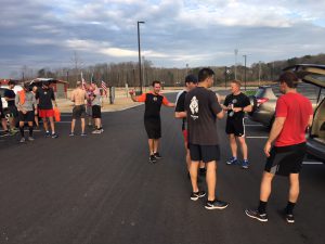 The PAX started Indian-moseying around Veterans Park’s big loop with Westside taking point. Every time he would come back around the PAX would come to a halt and check the incline, going uphill and we would do a low count exercise X10 while going downhill with Gravity Assist we would do (drum roll… wait for it… you guessed it…) a higher count exercise X20. At each stop, a new set of exercise would be added.