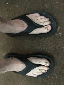 By this time the flip flop of Spandex shoes and the near collision with Aflac made me rethink our direction.