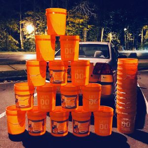 This morning a pyramid of Home Depot buckets greeted the PAX on a frigid Friday for a Birthday Q Bucket Beatdown.