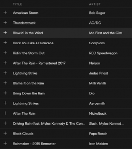 - Burpee EMOM – “Thunderstruck” AC/DC, “Blowin’ in the Wind” Me First & the Gimme Gimmes, “Rock You like a Hurricane”, etc
