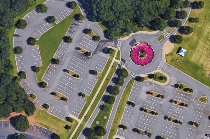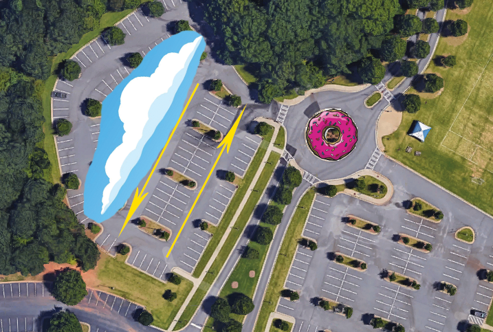 From there, we moved to the parking lot beside the donut. I had considered how to incorporate this grassy knoll into the beatdown as it reminded me of the clouds in the Simpsons opening sequence, but thankfully, I traversed this area during the pre-run time and quickly realized it would be way more running than YHC wanted to do, so an audible was called on the Weinke. Bernie Sanders and sprints would become one half of the Dora beatdown.