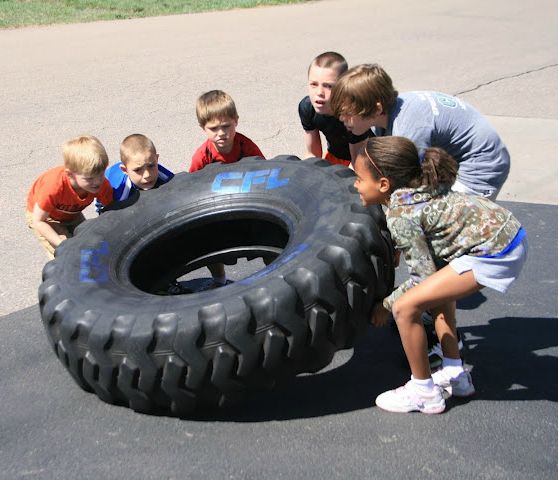 Partner runs to the tires and flips 3 times toward the group then 3 times back to the start. Then run back to your partner and swap.