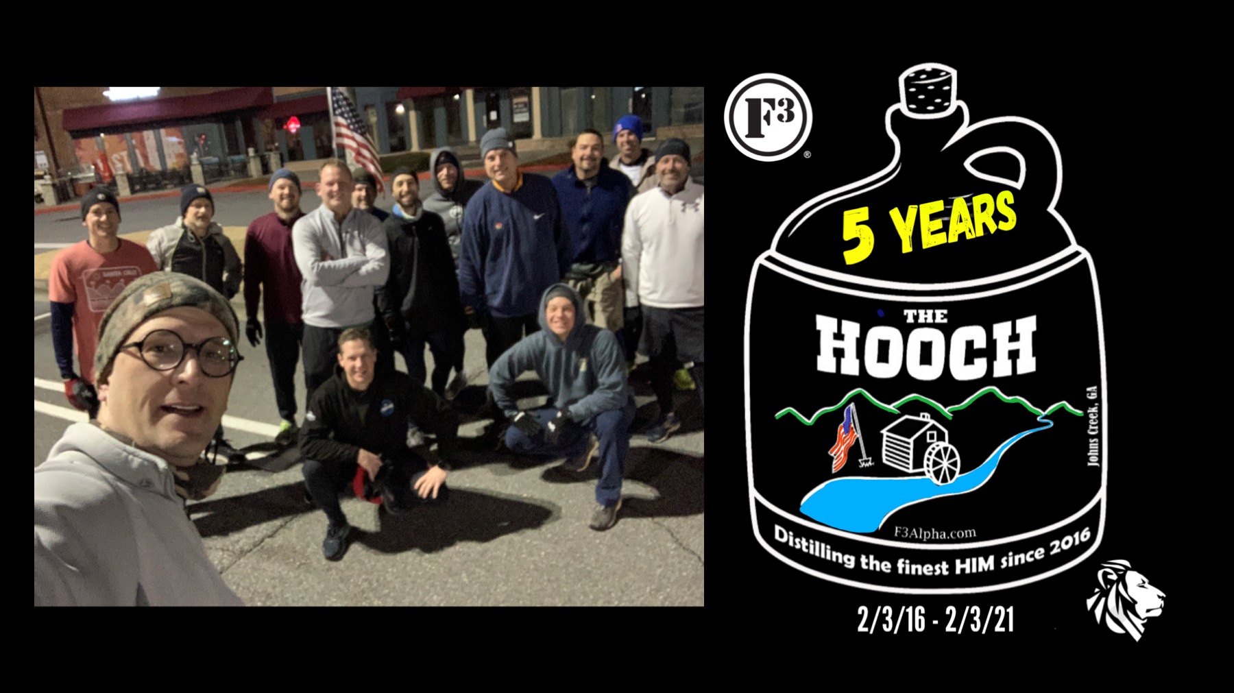 I did not realize when I signed up for 2/3 that it was the 5 year anniversary of the Hooch… nor did I realize until Monday afternoon when I looked to see who was the Q for Wednesday that I was the Q. I often go back through backblasts to look for options of what sort of work we may have done in previous years, and when I saw that the very first Hooch Backblast was from 2/3/16, I knew that we had to do a repeat. I actually think this particular beatdown has come up at least once while I’ve been at the Hooch… probably also on anniversaries.