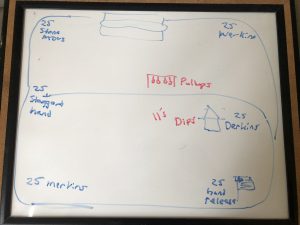 We moseyed to the pavilion and waiting was the board with a crudly drawn map of the park. This was going to be a merkin mile but not your everyday one.
