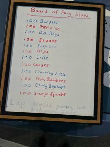 Brought back and oldie but a goodie this am. We took off for a quick mosey to the upper parkings lot ( plan was to use the playground and upper pavilion but no lights). The PAX saw the board and knew something was up…