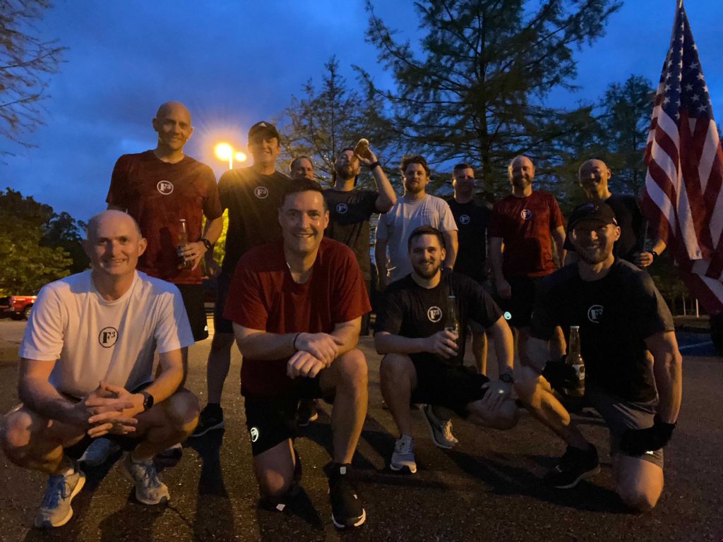 Continue mosey towards the usual spot, but this is no usual BD so we will continue our mosey for another half mile around the darkened path…sneaking up on the warm up spot from behind. Past the dog park and out of the woods we emerged for the following: