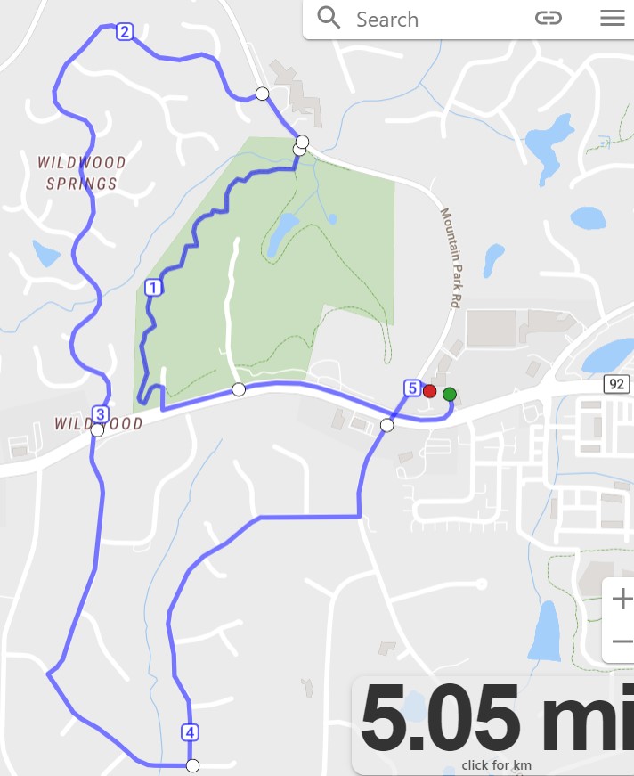 Combination run of Leita Thompson trails and road down to Waverly Hall and back.  Mumble chatter about the “sister” hills, the Braves, and the Roswell Mayoral election.
