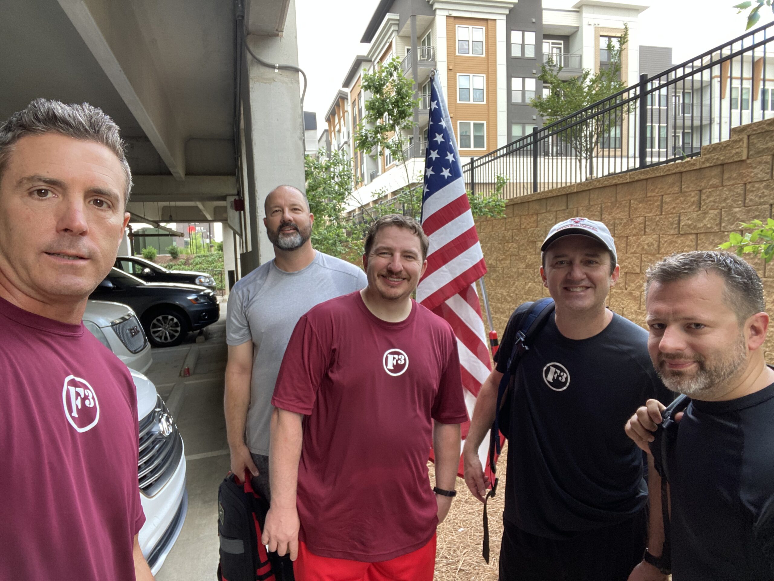 Planted the flag as 4 pre runners came rolling in. Baskins had to bolt to plan for Flashes birthday party, so 5 of us headed to the top of the garage for a sunrise warmorama