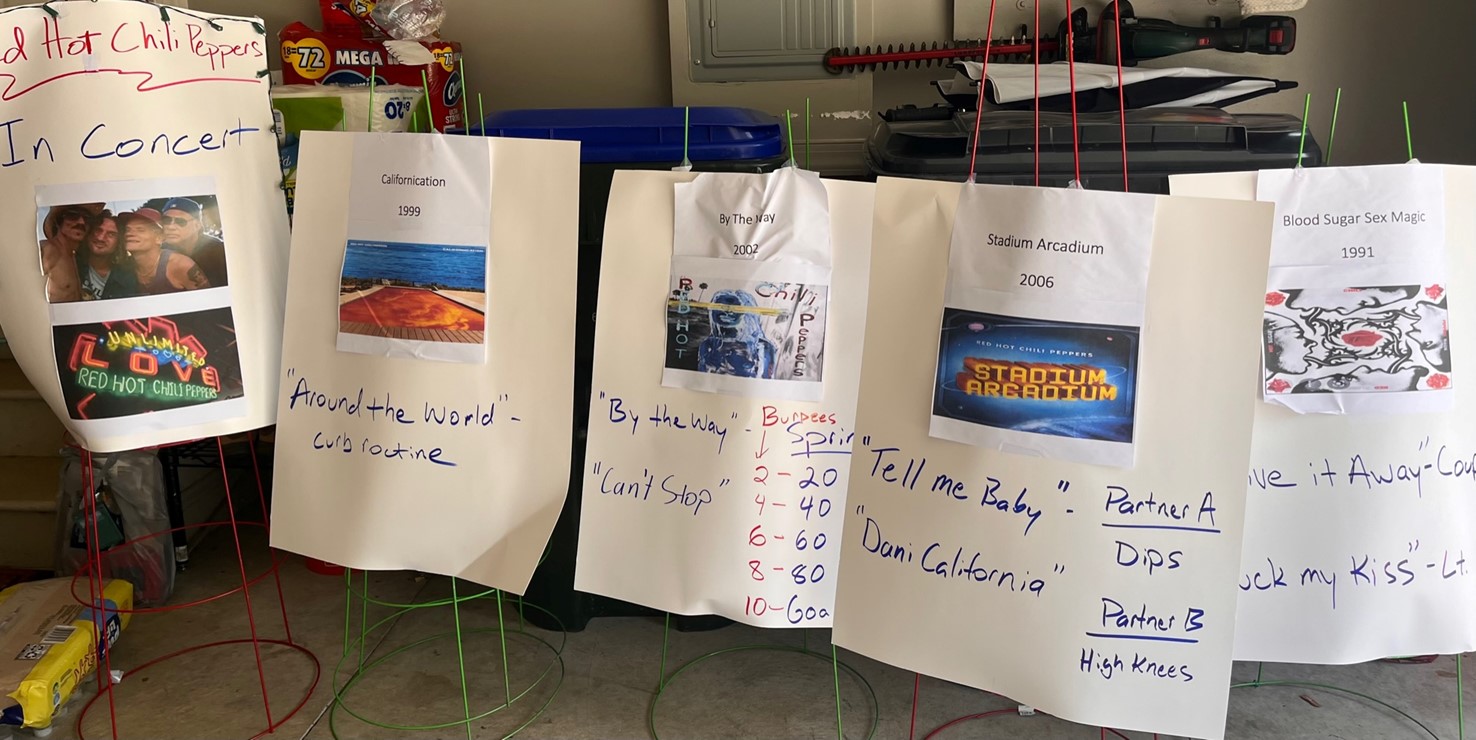 “By The Way” and “Can’t Stop” – PAX lined up on the goal line and were instructed to do a number of Burpees then sprint to the corresponding yard line. The additional challenge was that PAX were given the option of eating a Chili Pepper or Red Hot for a themed inspiration on each round.