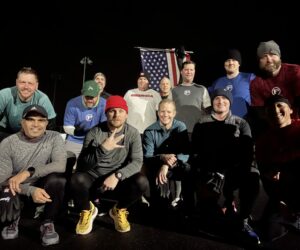This morning was extra gloomy so Q graciously planned out a high-tempo workout with running between 3 stations. The run came to just .75 mi…