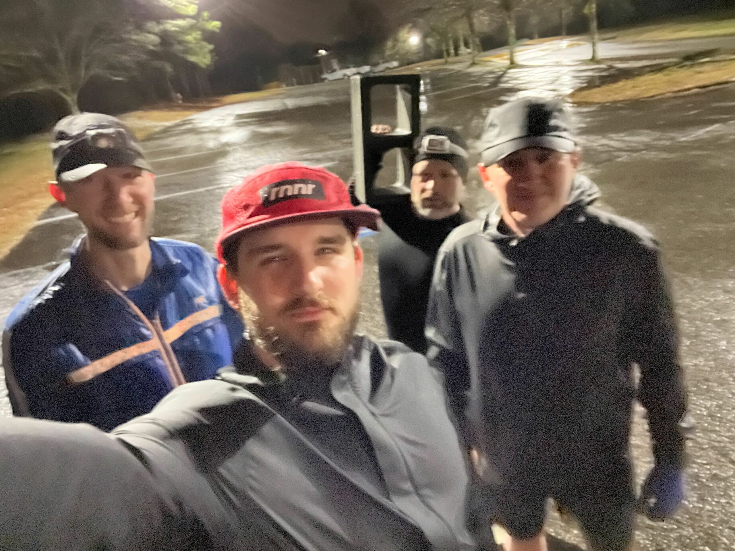 The Misery Mile – Like the No Mercy Mile meets a String of Pearls, adapted from the track to the trail. With a cinder block and with a focus on misery instead of a mile. The constant rain ensured the misery was delivered in an optimal serving.