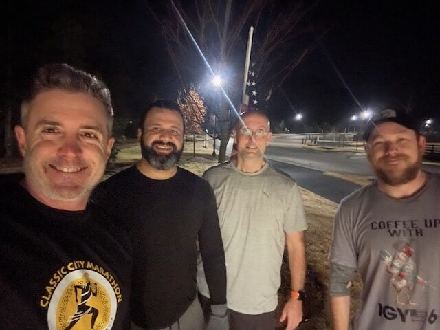 Did a loop starting at the entrance of the park, passing two speedbumps to the stairs, up the stairs, left down the street, then back down to the entrance. At the 2 speedbumps do 5 burpees, 10 mercans and 15 squats. Bear crawl up the stairs, 25 various ab exercises at the top, mosey to the turn off for 25 Cumming count mountain climbers, then run backwards down the hill to the entrance. Did this twice, on the 2nd trip we did burpees, wide mercans and sumo squats. 15 Big Boy sit ups at top of stairs.
