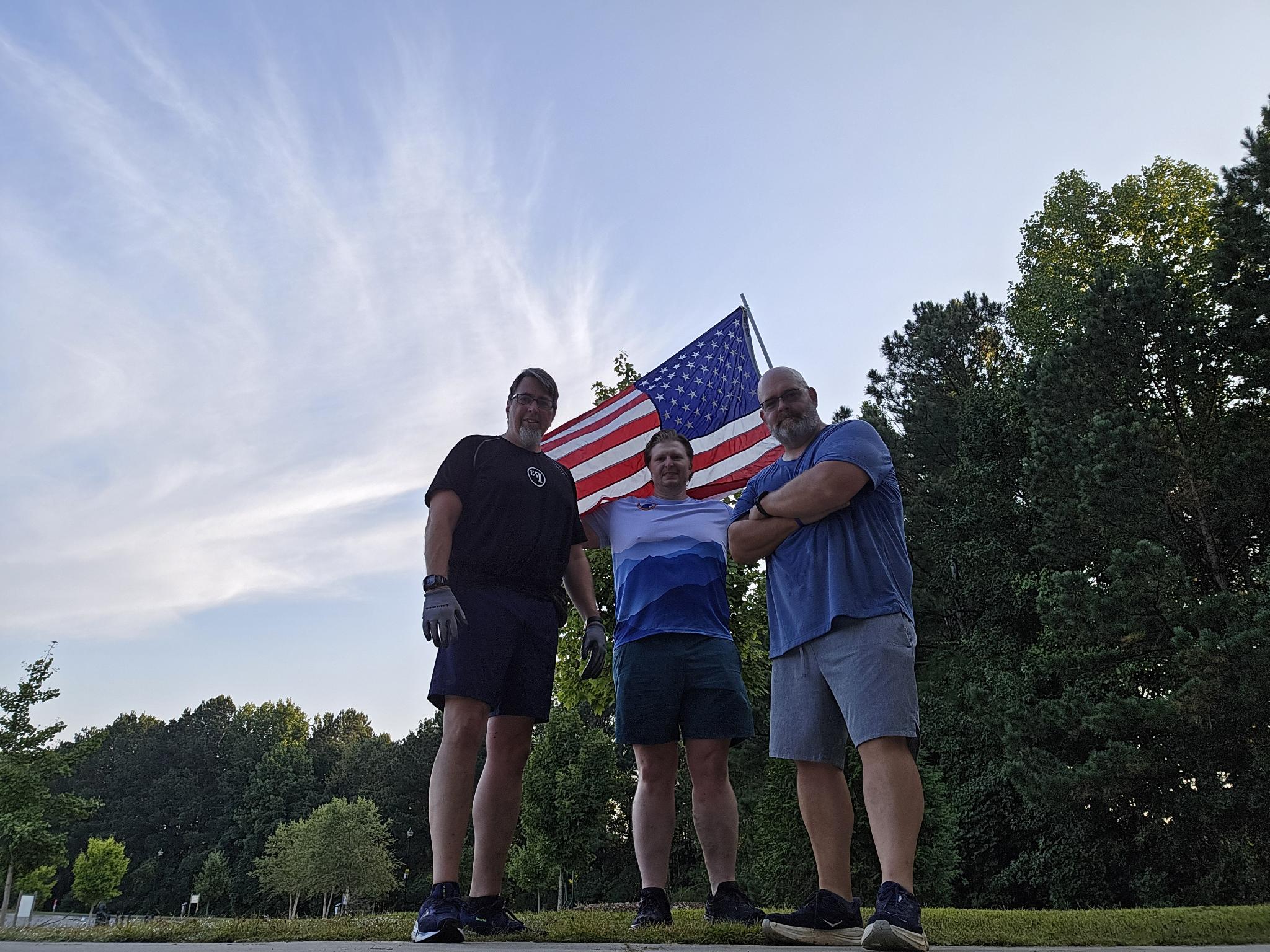 BDSM stations was the name of the game. Four stations around the loop and each PAX would perform the workout then mosey to the next station. Starting at 10, every loops would decrement by 1. Once the "3" lap was performed, the count was bumped up to 15 for the final lap. Time was reached before we hit the last set of merkins. The exercises and counts are below: Big-boy situps - 67 Derkins - 67 Sumo Squats - 67 Merkins - 52