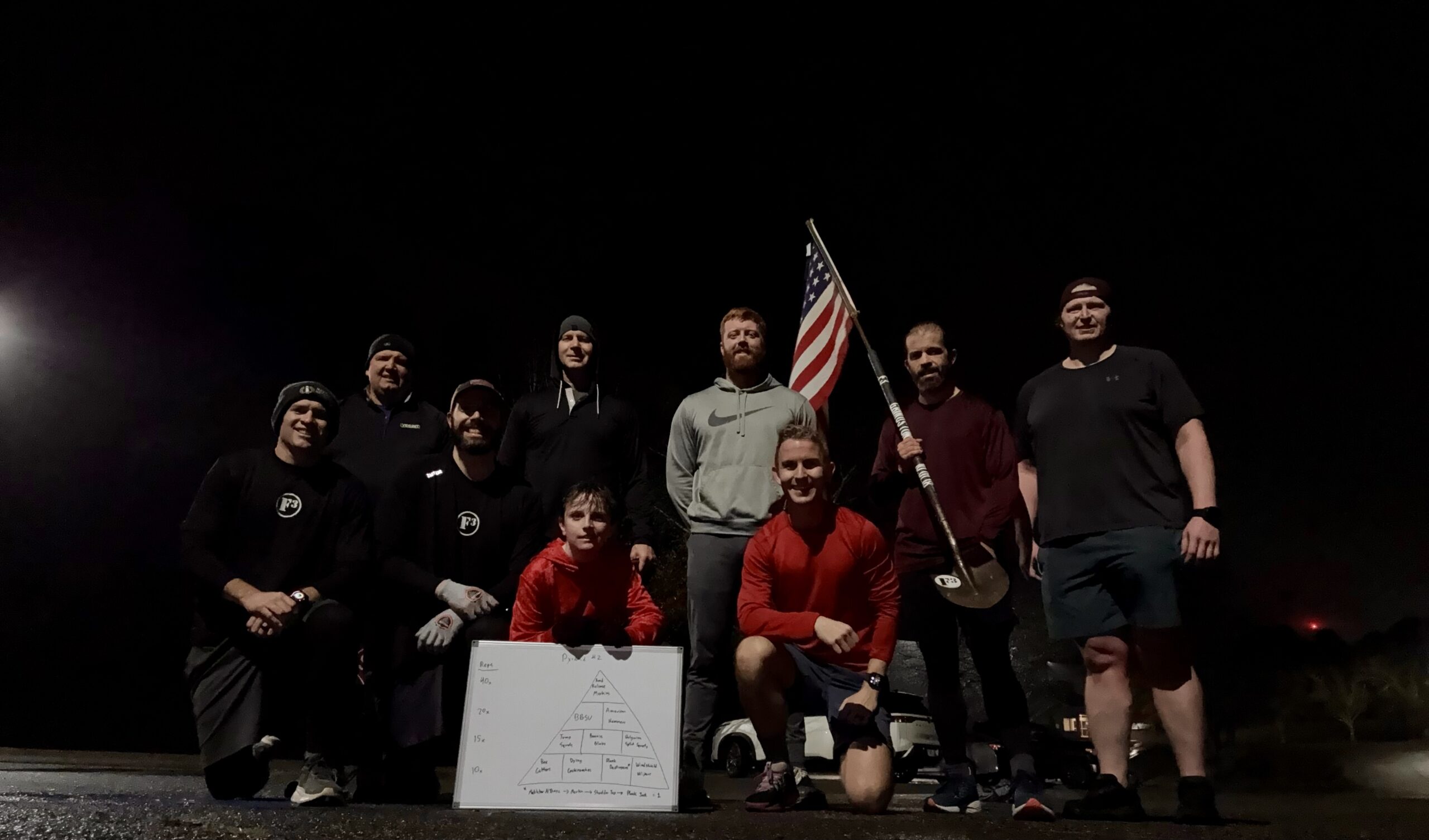 Two Pyramids split by a quick lap of the parking lot for muscle recovery, and followed by some batwings. Everything Cumming count where applicable. Pyramid #1 - pickup the 6 before proceeding to the next level- Level 1 - 10 reps each