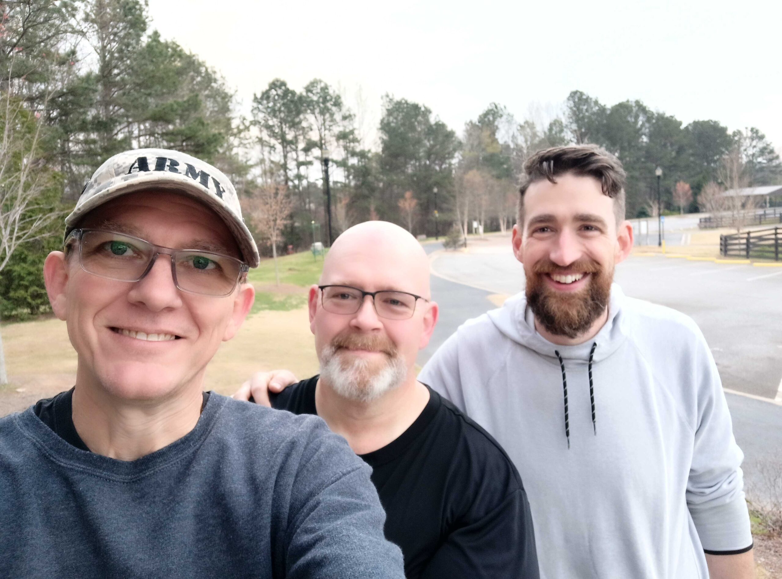 Sp1tvalv3: mosey to where we usually run a lap, 10 bench dips, 10 Carolina drydocks, then mosey, sprinting between light poles, repeat until we are out of time.