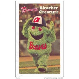 Bleacher Creatures unite! Dating myself here by reminding all that the original Bleacher Creature was one of the Braves’ old mascots. Kind of an odd green yeti looking character.