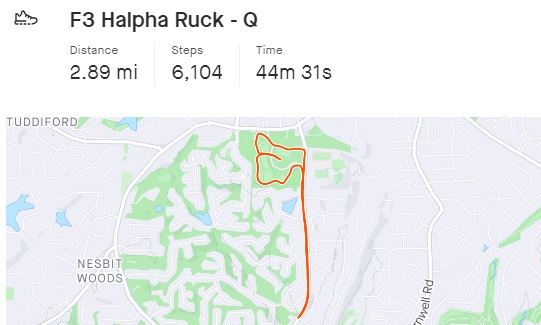 4 PAX circled up equipped with rucks and headlamps. Intro + disclaimer given and we were off.
